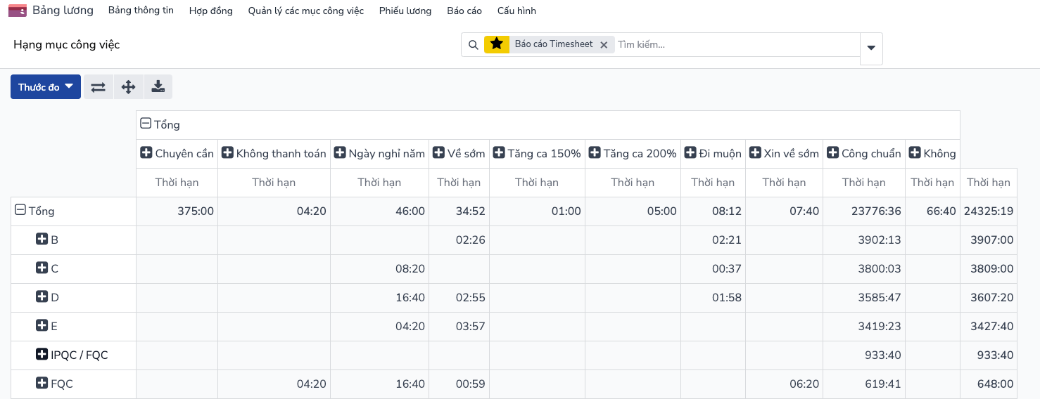 - Biểu đồ tăng ca, nghỉ phép, vắng mặt